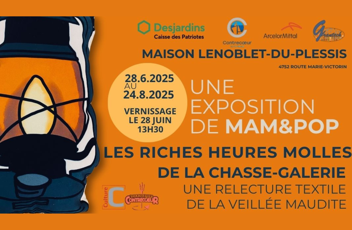 Culture C et le festival Les Diableries ont le plaisir de présenter Les riches heures molles de la Chasse-Galerie : relecture textile de la veillée maudite, une installation artistique immersive de MAM & POP, en tant qu’exposition estivale.