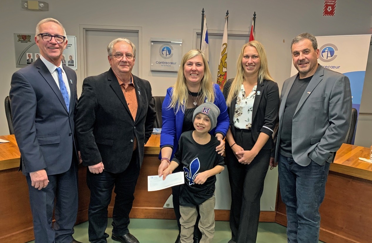 Lors du conseil municipal du 21 janvier 2025, la Ville de Contrecœur a versé une aide financière de 500 $ à Ryan Gendron, jeune citoyen de 9 ans, dans le cadre de sa pratique sportive.