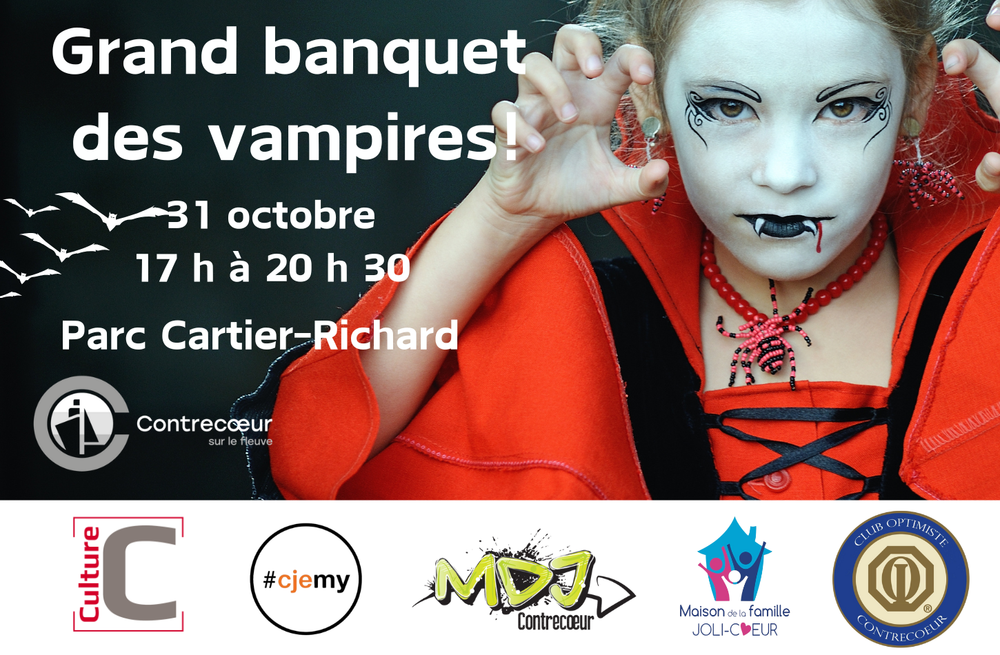 Rejoignez-nous au Grand banquet des vampires le jeudi 31 octobre, de 17 h à 20 h 30 au parc Cartier-Richard (4752, route Marie-Victorin).