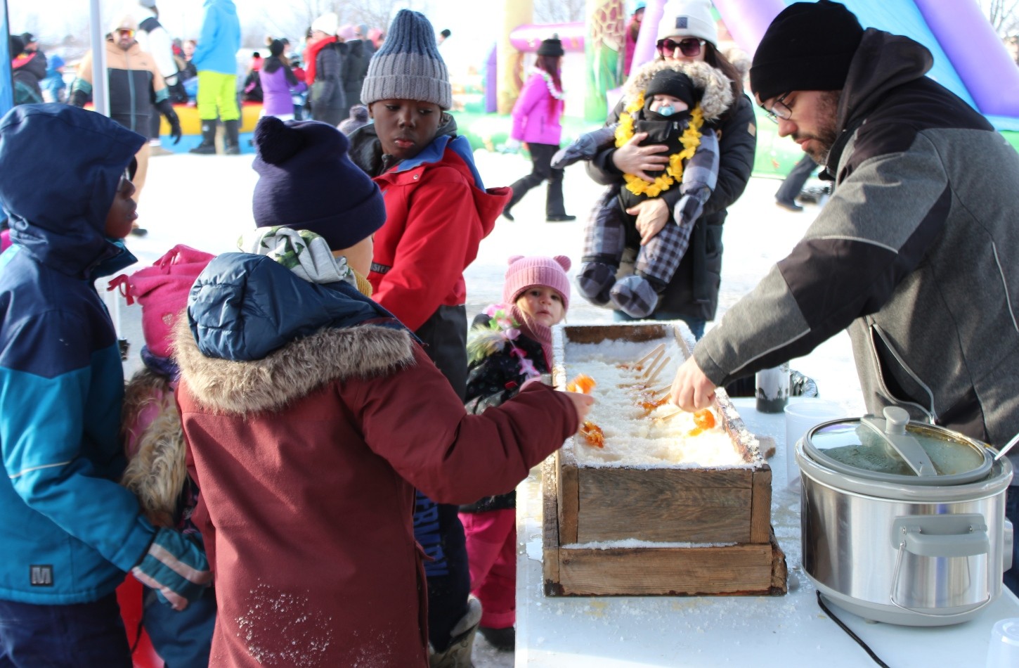 Les petits et les grands ont pu glisser, patiner, jouer dans les jeux gonflables et déguster de la tire sur neige, du café et du chocolat.