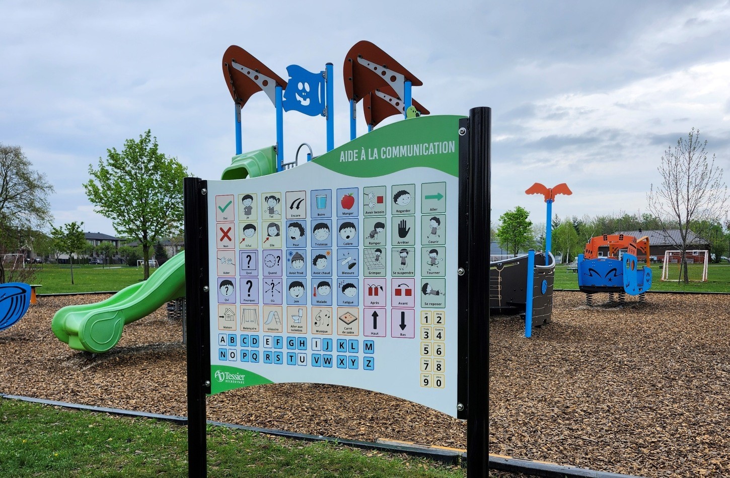 Afin d’aider certains enfants qui ont besoin d’un encadrement plus structuré pour fonctionner, un panneau d’aide à la communication a été installé au parc Antoine-Pécaudy (1141, rue des Chênes).