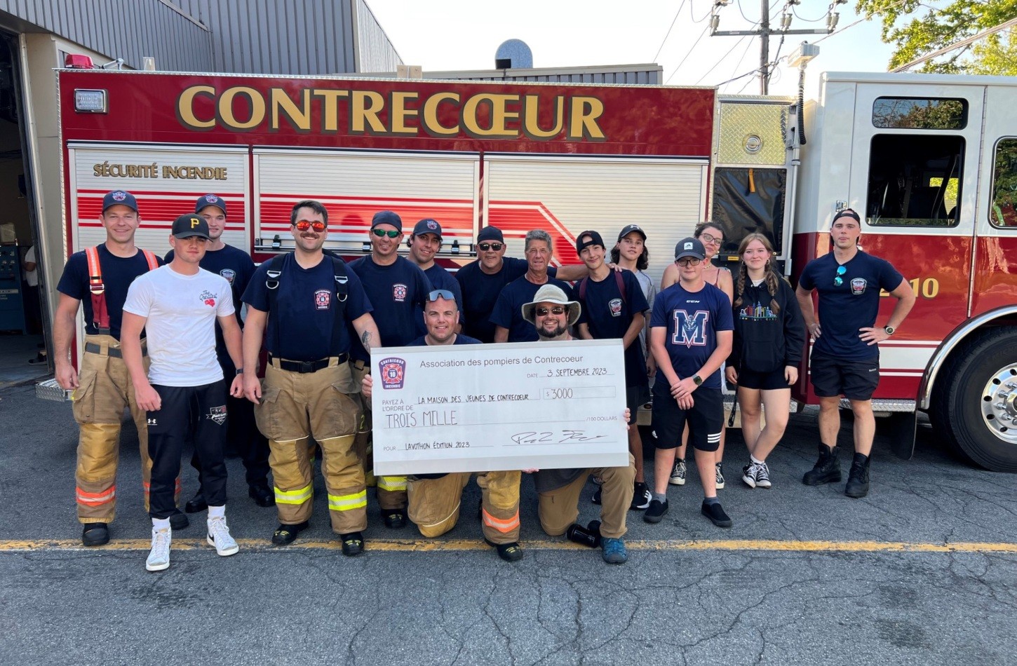 De la part de l’Association des pompiers de Contrecœur, merci à tous les citoyens qui sont passés nous encourager à notre 2e édition du Lavothon du 3 septembre dernier au profit de la Maison des jeunes de Contrecœur. Votre participation en grand nombre a permis d’amasser un total de 3 000 $ qui a été fièrement remis aux jeunes de notre communauté.