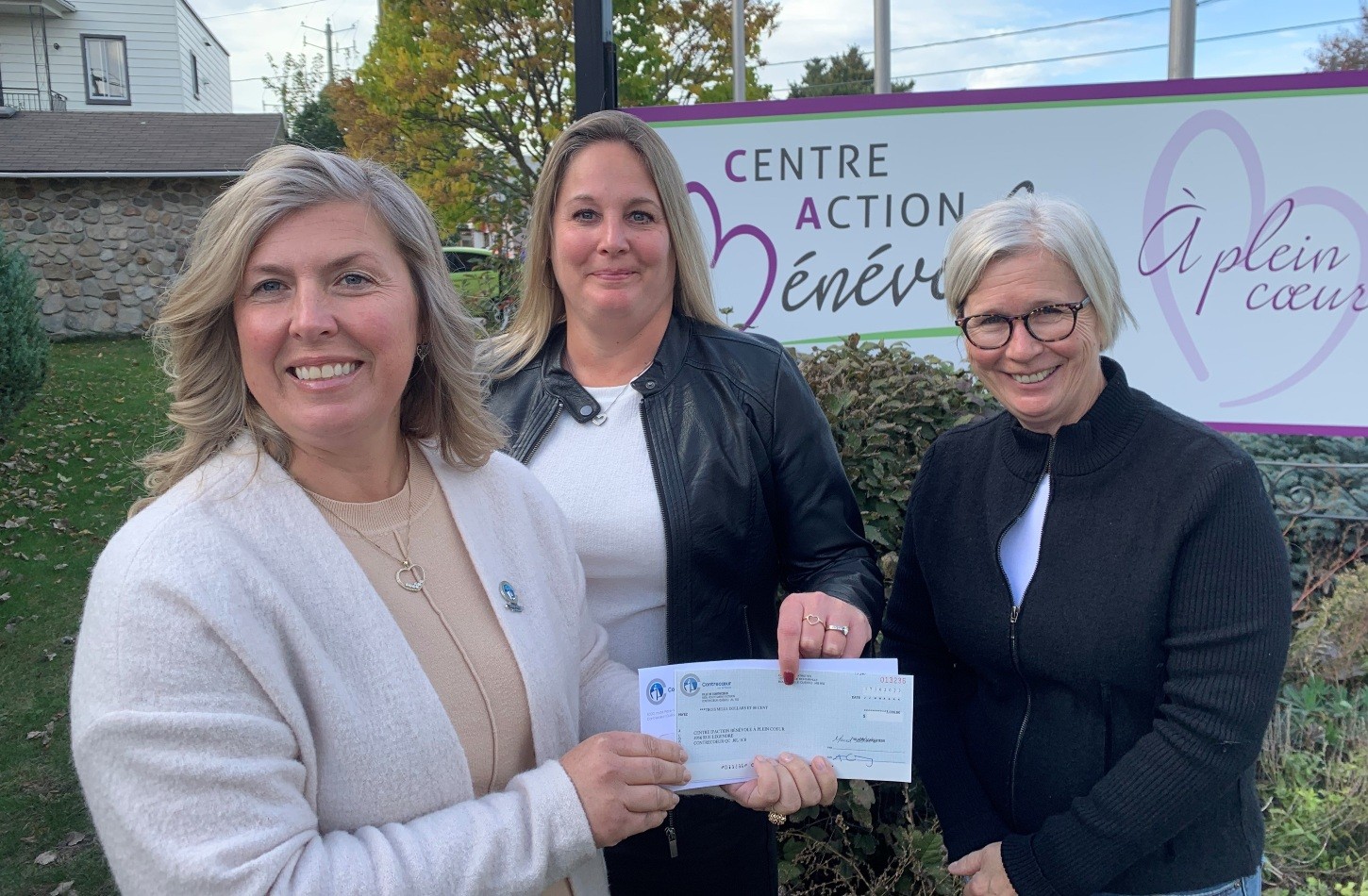 Sur la photo : la mairesse Maud Allaire, la directrice générale du Centre d’action bénévole de Contrecœur Nancy Leduc et Sonia Ringuette, administratrice de l’organisme.