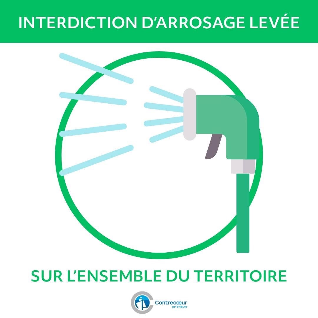 ...recœur informe la population que l’interdiction d’arrosage est maintenant levée. Il est donc de nouveau permis d’arroser les pelouses, jardins, haies, arbres et fleurs, dans le respect de la réglementation municipale en vigueur. Nous remercions les c...